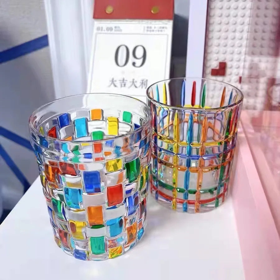 Entdecken Sie die exquisite Verbindung von Kunst und Funktionalität mit unseren handbemalten Kristallgläsern im europäischen Stil, verziert mit farbenfrohen Linien. Jedes Glas ist ein Unikat, das nicht nur als elegantes Trinkgefäß für Ihren Lieblingssaft oder Whiskey dient, sondern auch als einzigartiges, personalisiertes Geschenk. Die feinen, gewebten Linien und die leuchtenden Farben auf dem durchscheinenden Kristallglas verleihen jedem Getränk eine besondere Note und machen es zum Mittelpunkt jeder Tafel oder Bar.