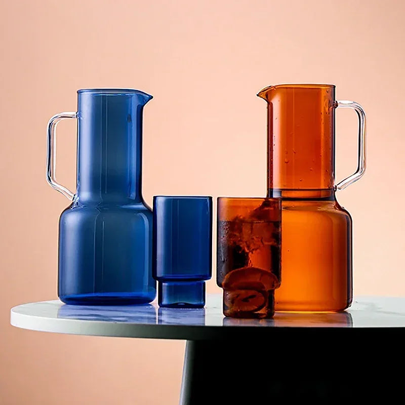 Ergänzen Sie Ihre Tischdekoration mit unserer nordischen Ins-Stil kreativen farbigen Wasserkaraffe aus hochtemperaturbeständigem Glas. Diese ästhetisch ansprechende und praktische Karaffe ist perfekt für den täglichen Gebrauch zu Hause, um kalte Getränke wie Wasser, Saft oder Eistee zu servieren. Mit ihrem großen Fassungsvermögen und dem einzigartigen Design ist sie nicht nur ein nützliches Küchenutensil, sondern auch ein echter Blickfang. Das hochtemperaturbeständige Glas gewährleistet Langlebigkeit und Sicherheit, während die lebendigen Farben und das minimalistische Design dem nordischen Stil treu bleiben und jedem Raum einen modernen Touch verleihen.