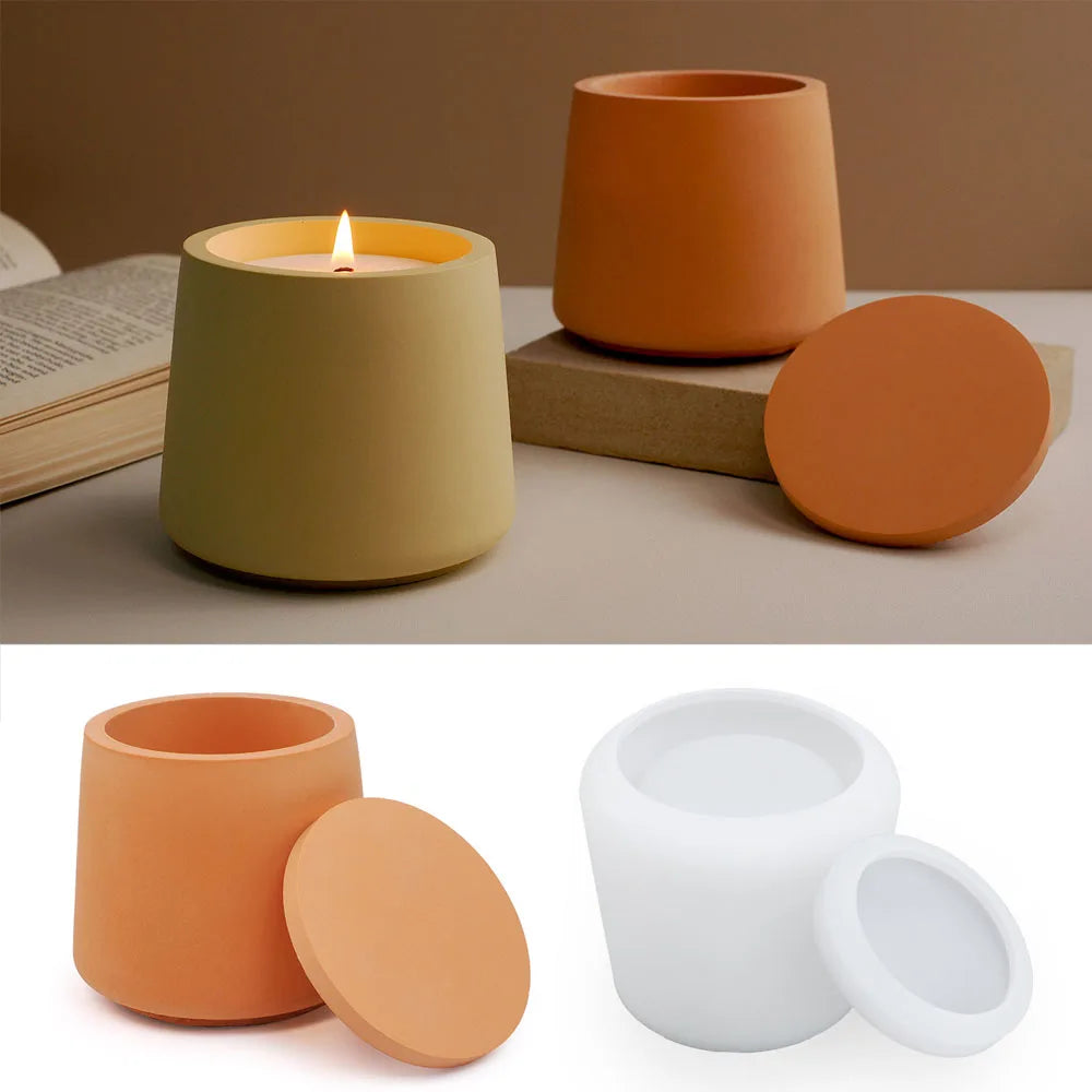 Runde Kerzenglas-Silikonform mit Deckel - DIY Schmuckaufbewahrung & Vasen-Gießform